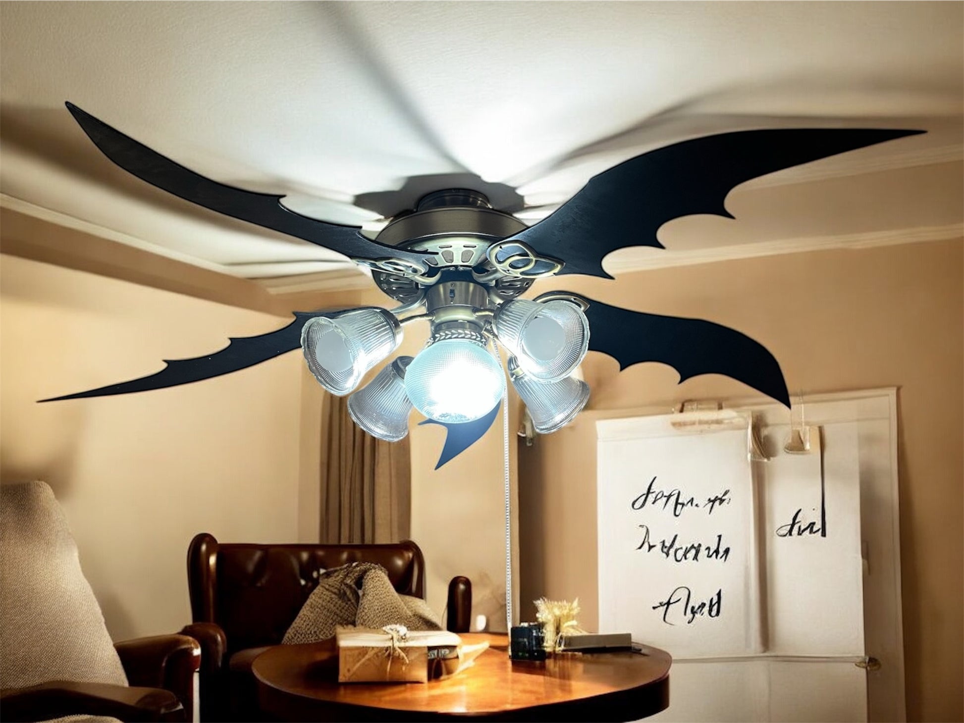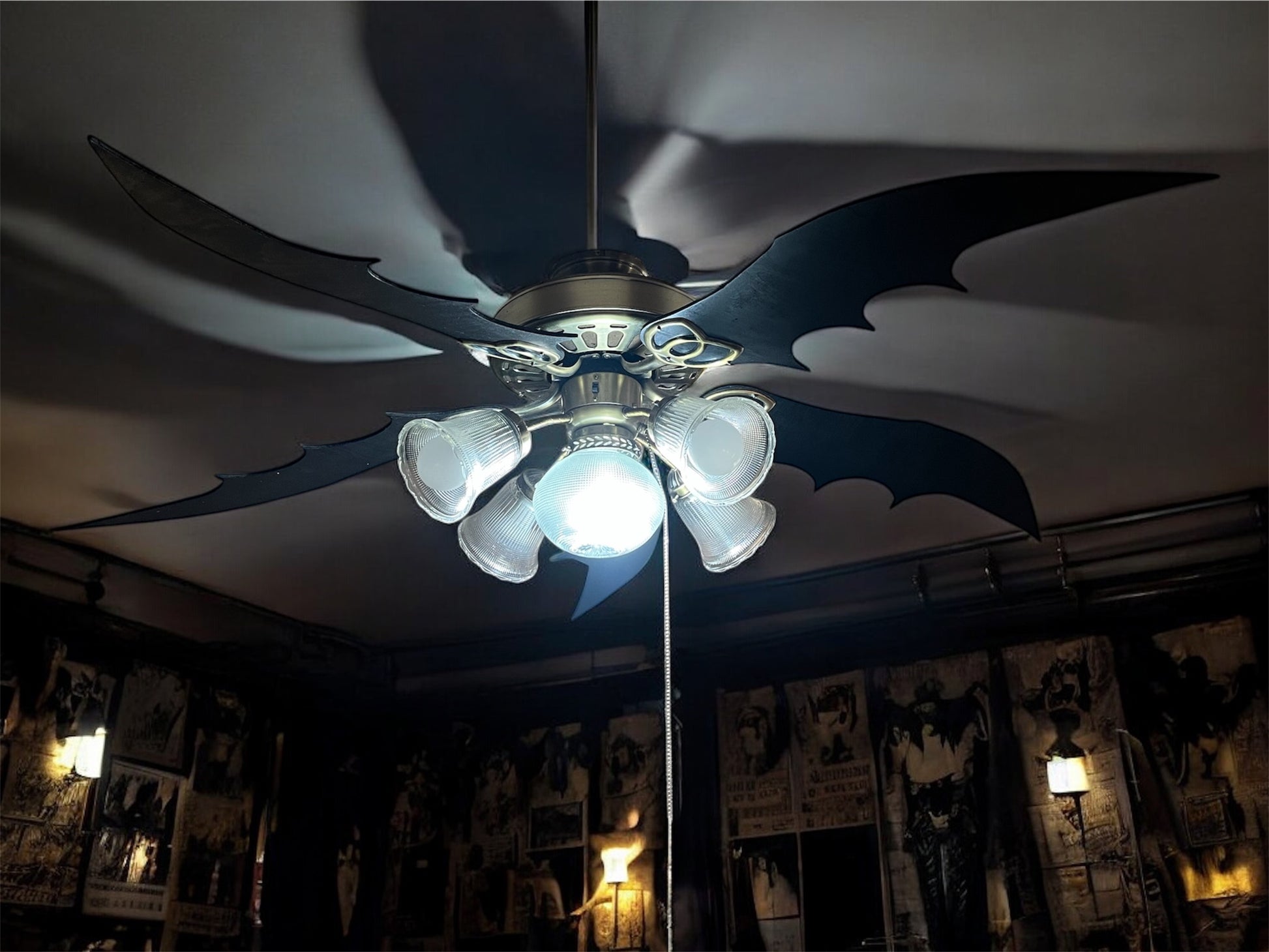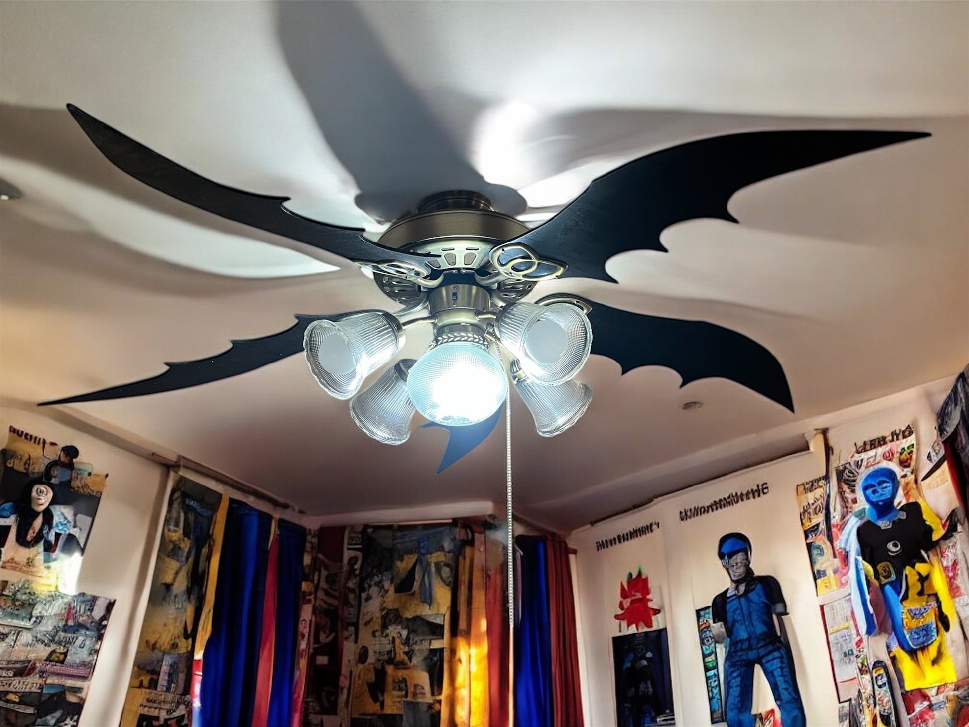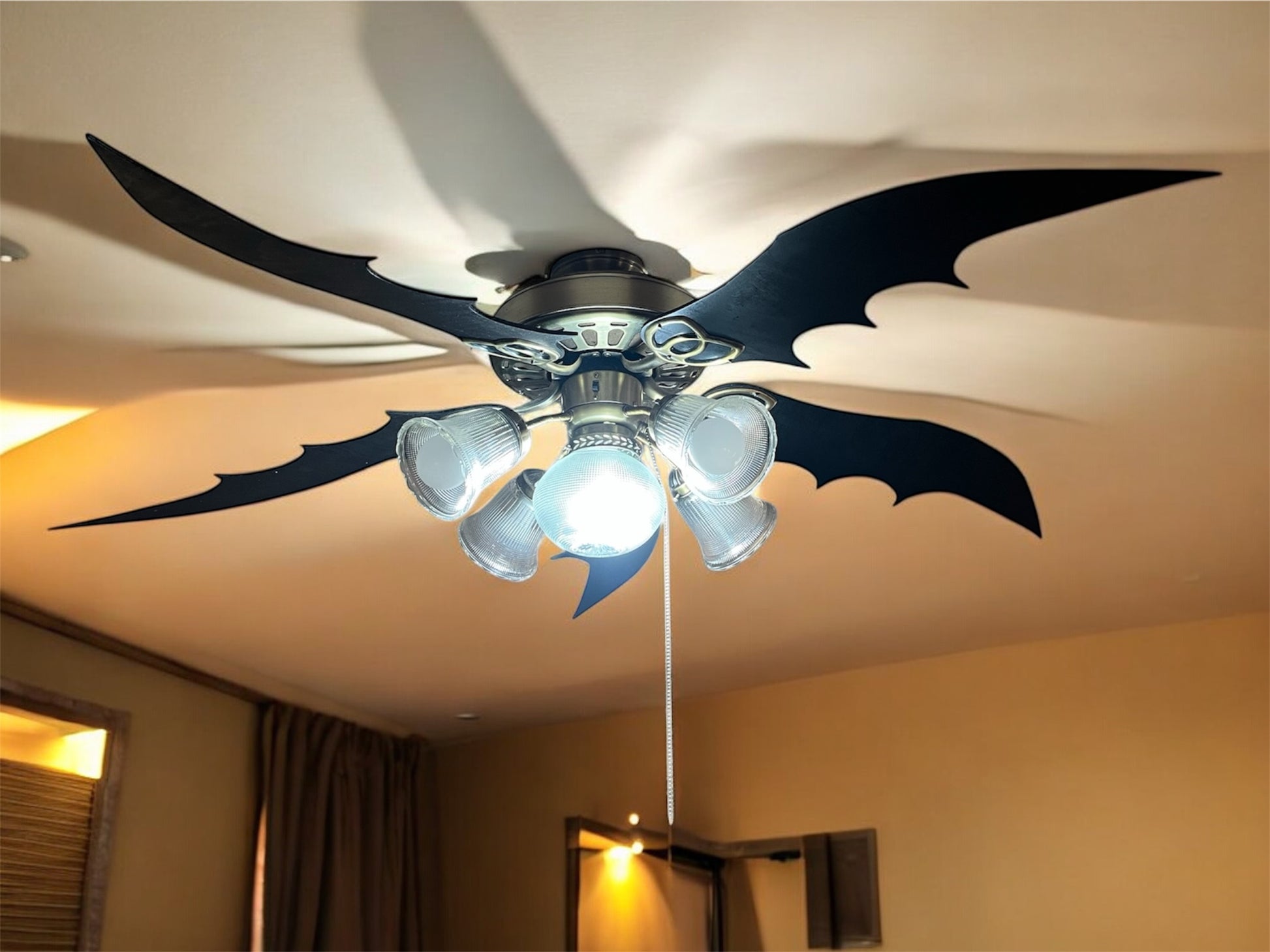 Accent your ceiling fan with these Batman-inspired black bat wing ceiling fan Blades. Perfect for superhero fans, comic book collectors, or anyone looking to add a touch of Gotham flair to their room!